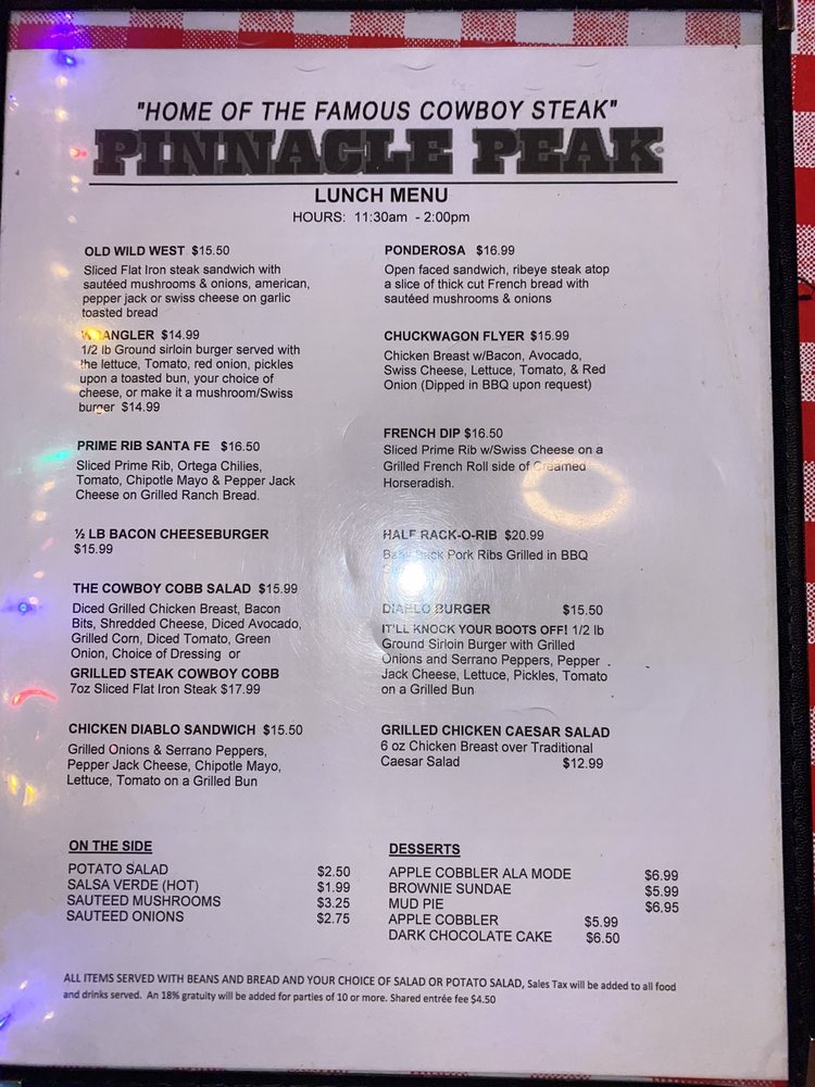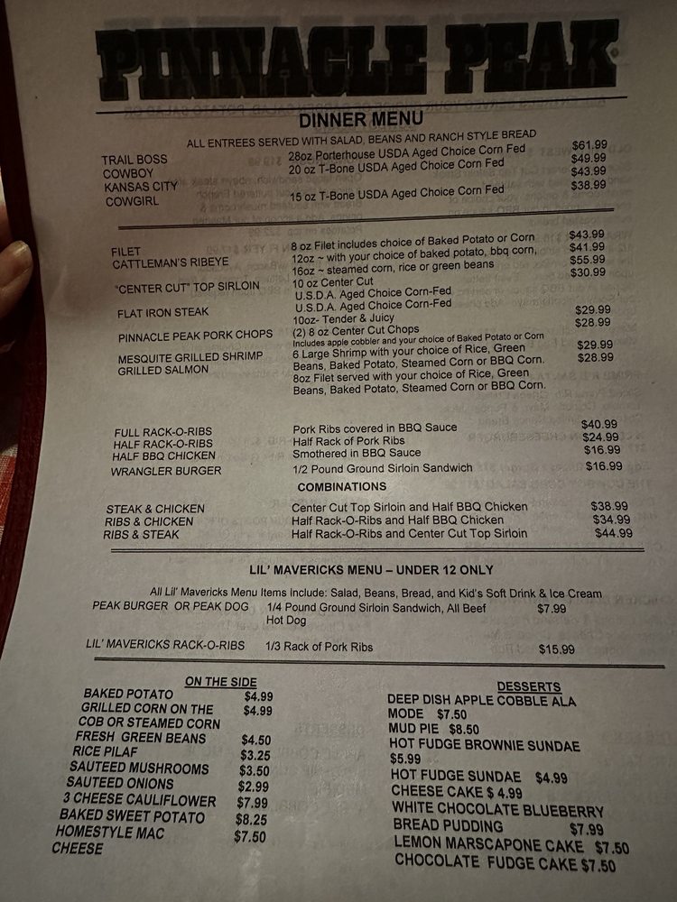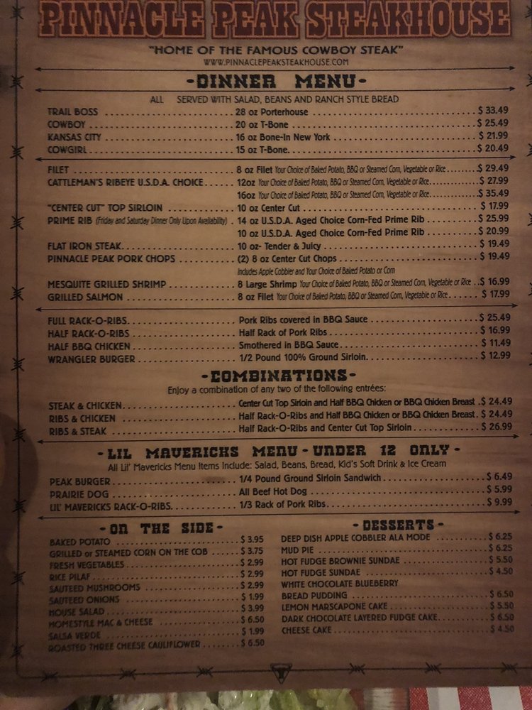 Pinnacle Peak Steakhouse Menu (Update 2025)
